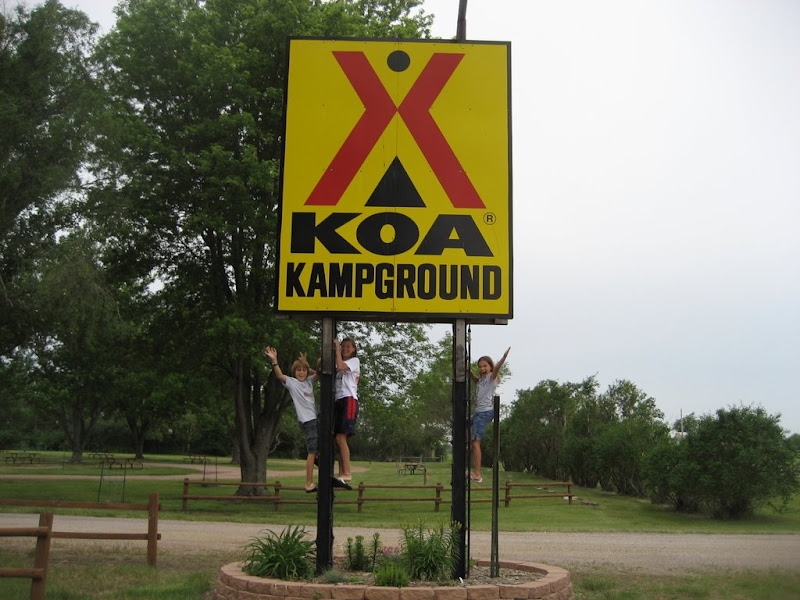 We pulled into the campground around 9:30. The owner drove us to our spot, I hooked up and we all got settled in. No cable at this KOA, Wendy had wanted to just cool out and watch the end of the Cross-town Classic. The kids wanted to go outside to run around, but the mosquitoes are out there in swarms. We are struck inside for the evening. Wendy sat down on the coach and said “Wee, so this is how we start our first night of sabbatical". Not that I mind. It was a long day of driving; I have some stuff to put away, a DVD player to fix and just want to hit the sack.