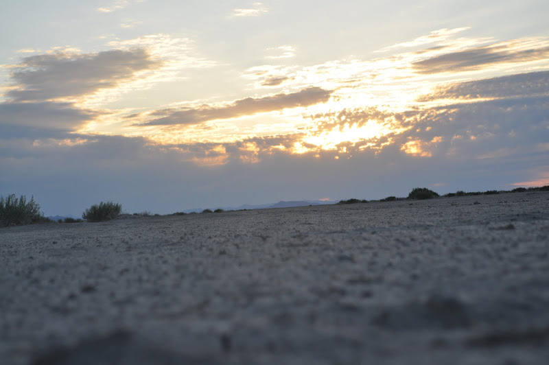 I step out on a spot that still is a bit wet. It gets soggy here when it rains, then dries flat and smooth. I walk out a ways and shoot some shots of the sunrise. Not the best, but I am not about to wake Charlotte at 6 AM for a shot.